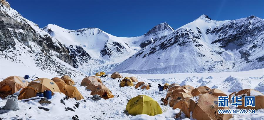 被大雪覆盖的海拔6500米的珠峰前进营地(5月22日摄,手机照片)。新华社记者晋美多吉摄