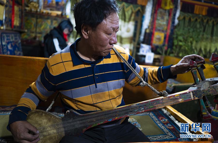 “牛头旅馆”老板多吉在旅馆里给游客弹六弦琴(5月17日摄)。新华社记者普布扎西摄