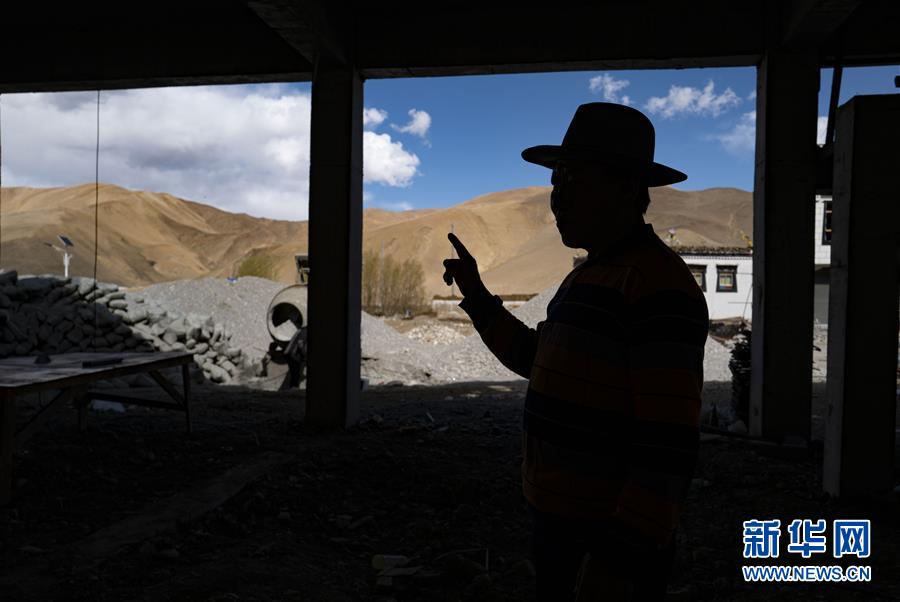 “牛头旅馆”老板多吉在新盖的旅馆监工(5月17日摄)。新华社记者普布扎西摄