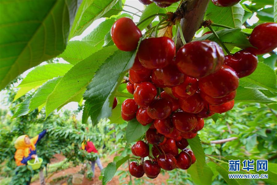 5月24日在滦州市九百户镇鸡冠山生态产业园拍摄的大樱桃。新华社记者杨世尧摄