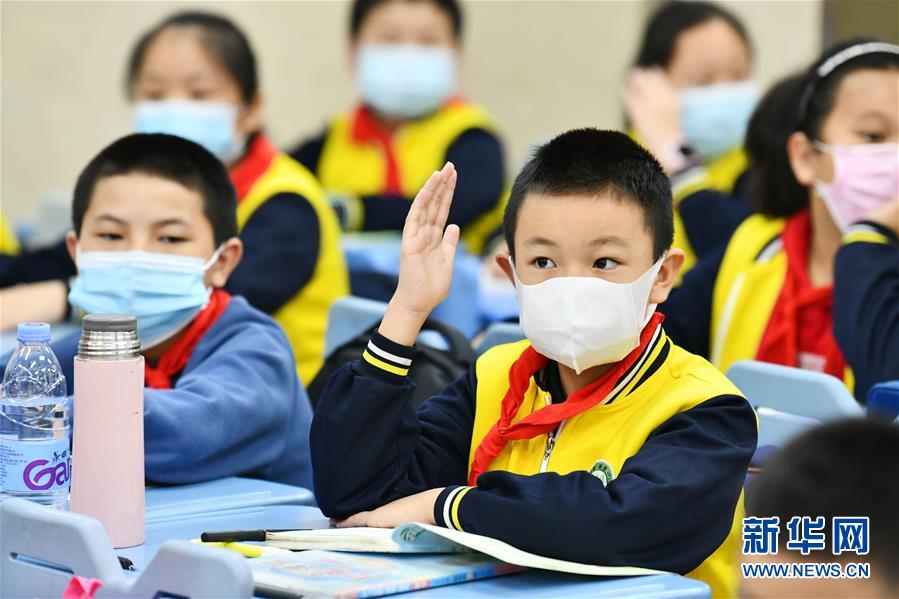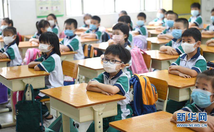5月25日,广州市荔湾区蒋光鼐纪念小学的学生在上课。当日,广州市各小学一至三年级学生正式开学复课。至此,广州市中小学各年级已全部开学复课。新华社记者卢汉欣摄