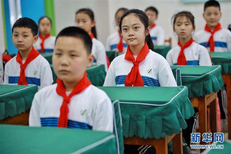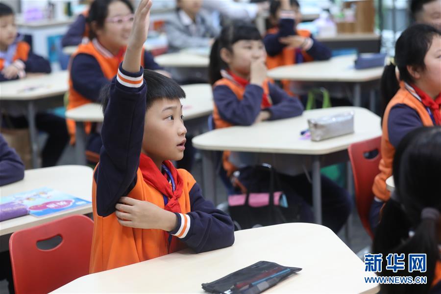 5月25日,贵阳市南明区苗苗实验学校的学生在课堂上举手回答问题。新华社记者杨文斌摄