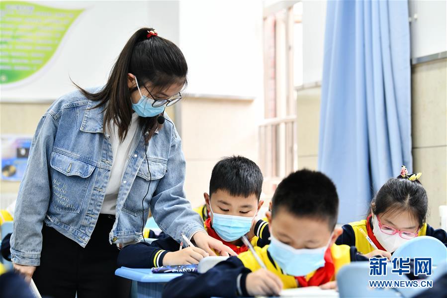 5月25日,贵阳市南明区苗苗实验学校的老师在给学生上课。新华社记者杨文斌摄