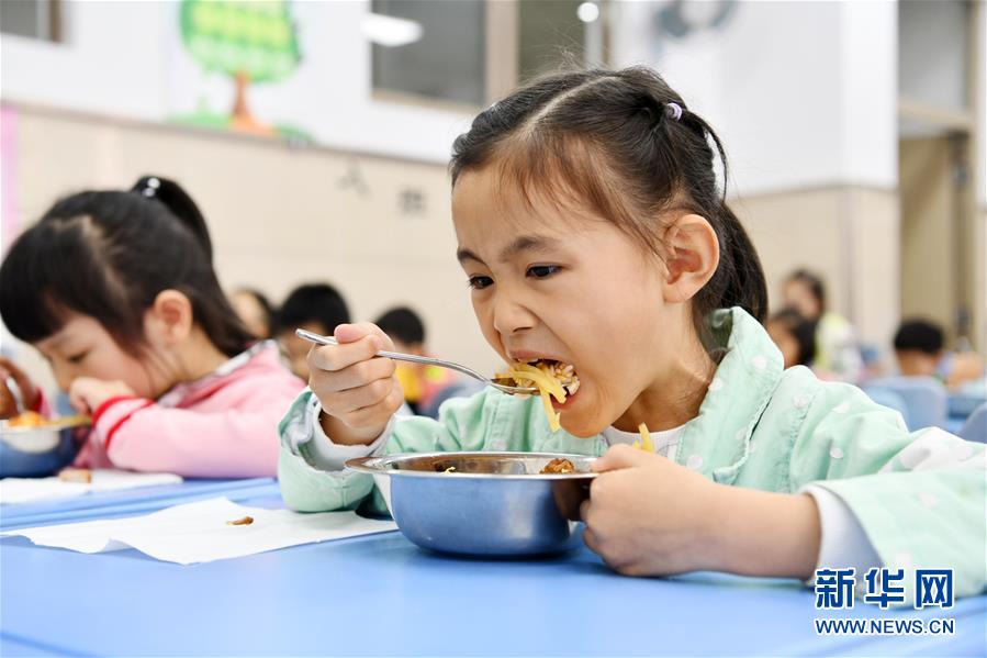 5月25日,贵阳市南明区苗苗实验学校的学生吃午餐。新华社记者杨文斌摄