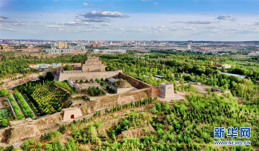 5月24日拍摄的树林环绕的榆林市镇北台(无人机照片)。 2017年4月起,地处毛乌素沙漠南缘的陕西省榆林市开展主城区百万亩生态圈及环城防护林带建设,对荒山荒地荒沙、撂荒地、不宜耕作土地、闲置土地进行造林绿化,对低效林地进行提升改造。2019年11月,榆林市被授予“国家森林城市”称号。昔日区域内的裸露土地全面绿化,城市及周围处处绿树成荫,呈现出一派“塞上森林城”的美景。 新华社记者陶明摄