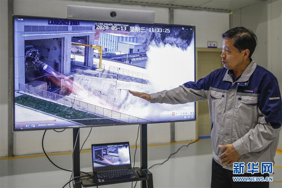 5月26日,蓝箭航天技术有限公司总经理杜方平介绍发动机点火试验。新华社记者张玉薇摄