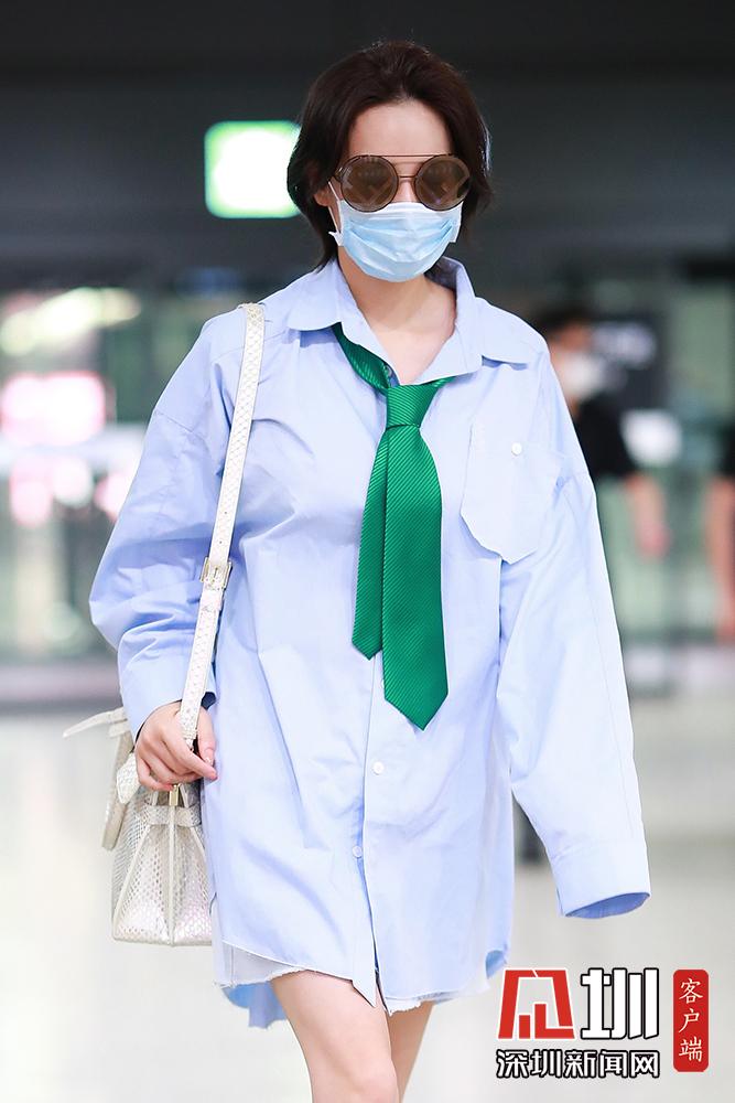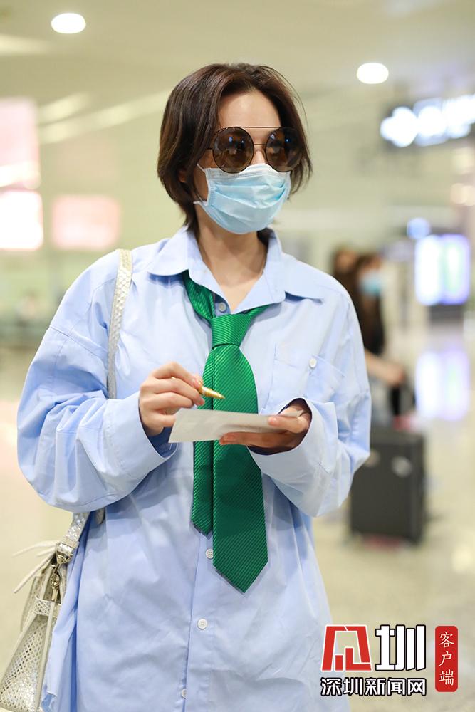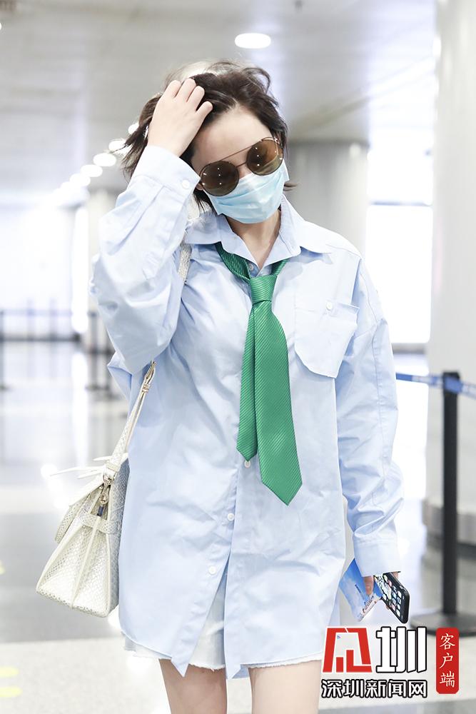 2020年5月26日,张馨予现身机场,从北京飞往上海。她墨镜遮面霸气撩发气场足,穿宽松衬衫搭配领带似清新学姐,玩下衣失踪秀纤细美腿。