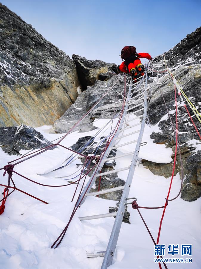 5月27日,2020珠峰高程测量登山队正在向珠峰峰顶挺进。新华社特约记者扎西次仁摄