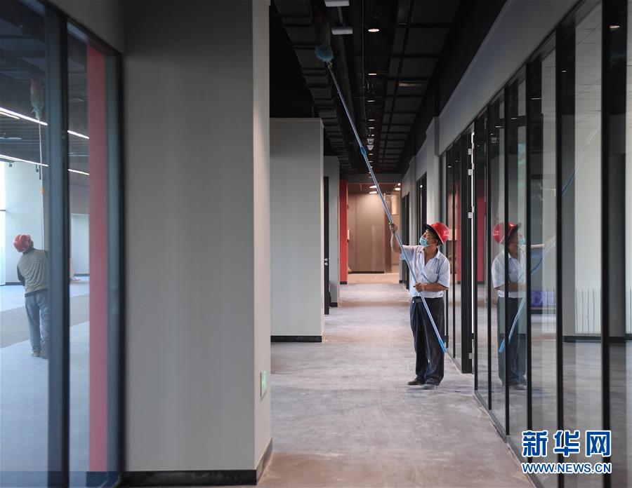 5月27日,保洁人员在“冰坛”内部进行保洁工作。新华社记者张晨霖摄