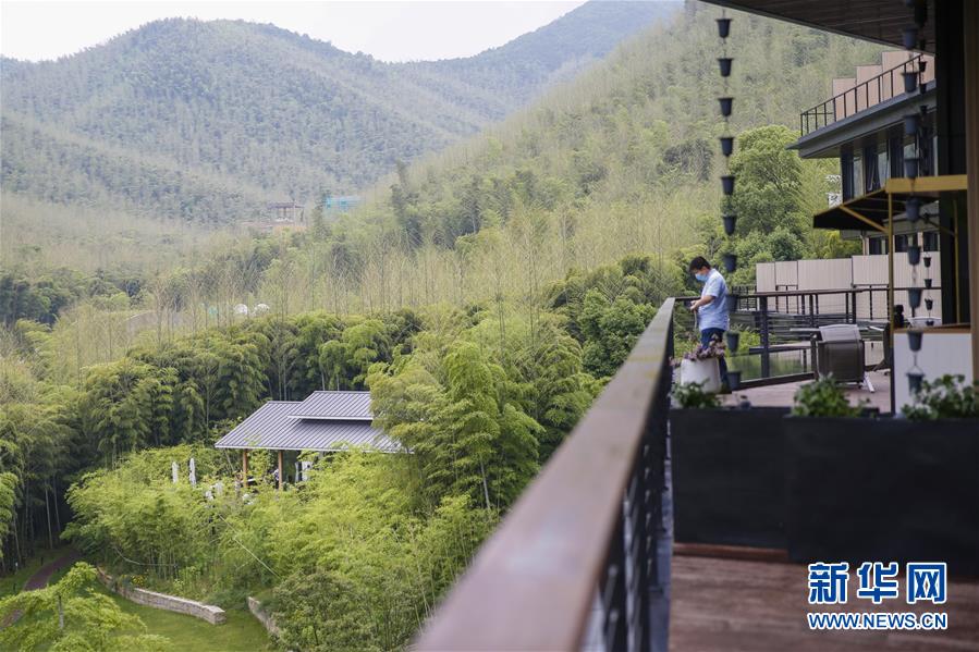 5月26日,一名游客在湖州慧心谷绿奢度假村休闲。新华社记者张玉薇摄