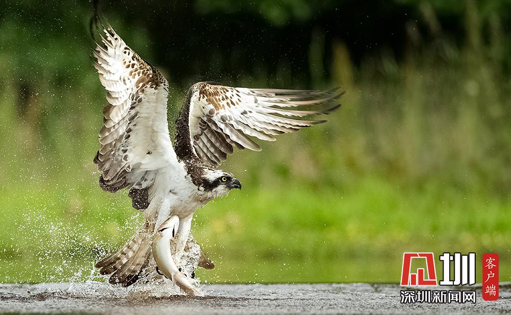 鱼鹰俯冲入水捕鱼 伺机而动“快准狠”