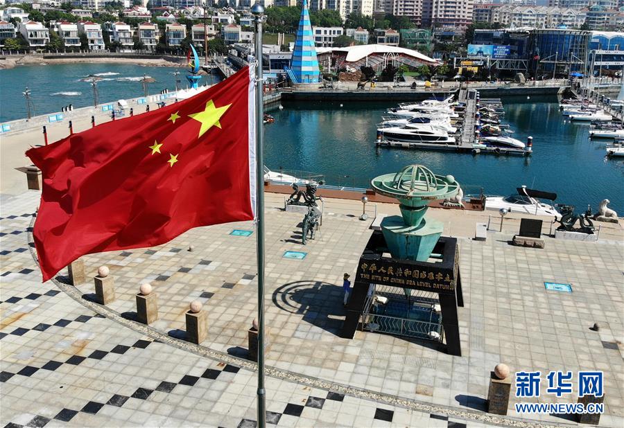 这是位于山东省青岛市市南区东海中路30号银海大世界的中华人民共和国水准零点景区(5月28日摄,无人机照片)。新华社记者李紫恒摄