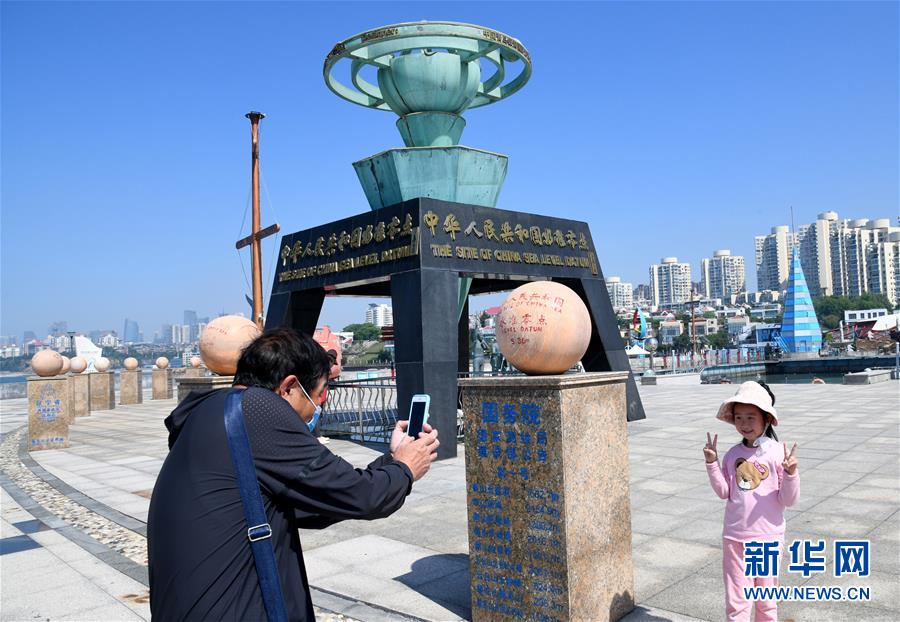 5月28日,游客在中华人民共和国水准零点景区留影。新华社记者李紫恒摄
