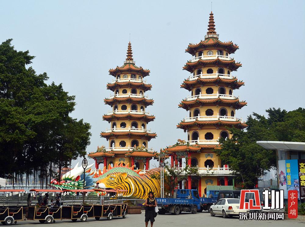 2014年3月18日,台湾莲池潭原名连花潭,位于高雄市左营区的东侧,南邻龟山、北接半屏山,潭长1.4公里、宽约400公尺,潭面面积约42公顷。<br>池潭西岸庙宇林立,五百公尺内拥有二十馀座寺庙,由北而南分别有孔子庙、北极玄天上帝、启明堂、春秋阁、五里亭、龙虎塔等,为高雄有名的寺庙观光景点。