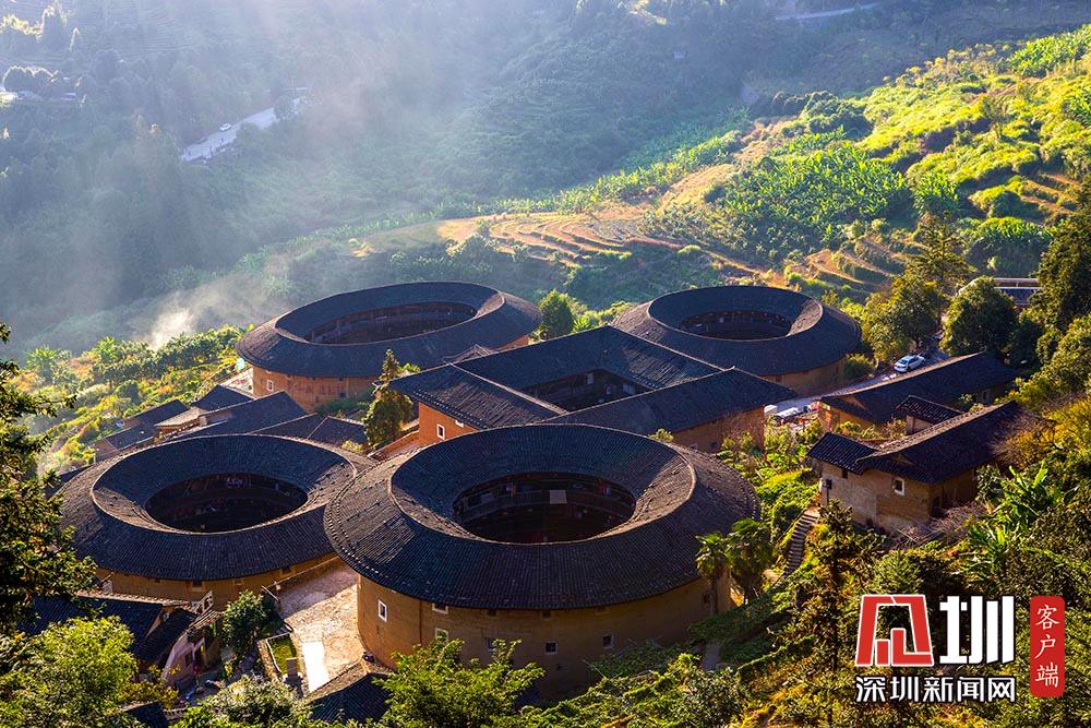 2017年11月1日,实拍福建南靖土楼令人叹为观止。不能吃的“四菜一汤”,它就是著名的田螺坑土楼群,它由步云楼、振昌楼、瑞云楼、和昌楼和文昌楼组成,建于海拔700多米的半坡上。