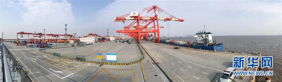 5月28日拍摄的上海洋山港四期自动化码头(全景照片)。