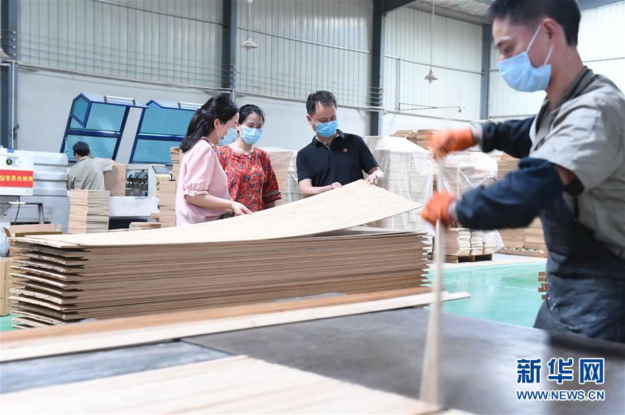 5月28日,邵武市委文明办党员干部张增忠(右二)在位于邵武经济开发区的一家公司了解企业复工复产情况。