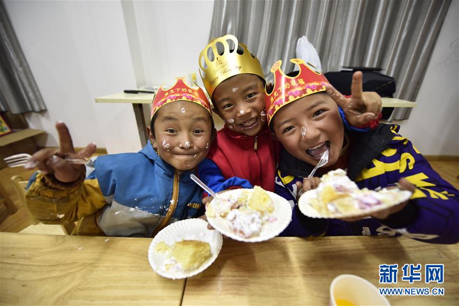 5月27日,玉麦乡小学的孩子们在庆祝“生日”。新华社记者王炳坤摄