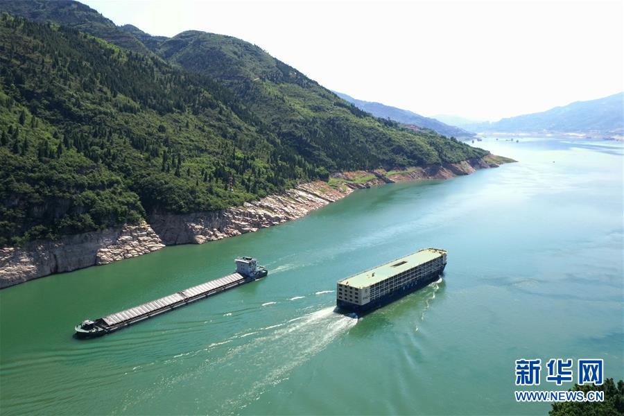 5月29日,船只在长江瞿塘峡段江面上航行(无人机照片)。新华社记者王全超摄