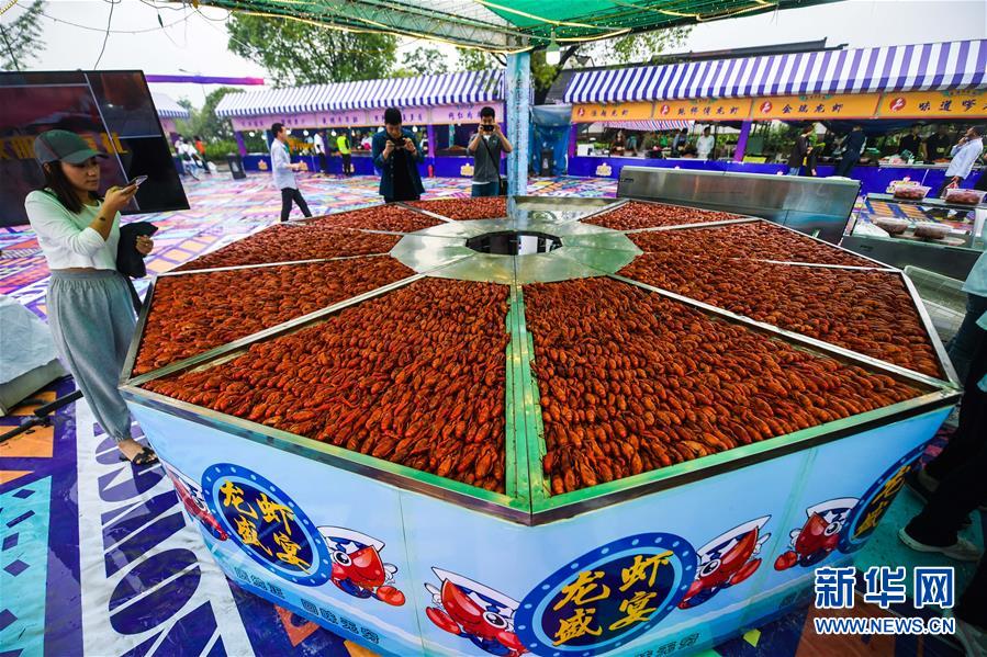 5月30日,游客在龙虾狂欢节现场拍摄小龙虾。新华社记者徐昱摄