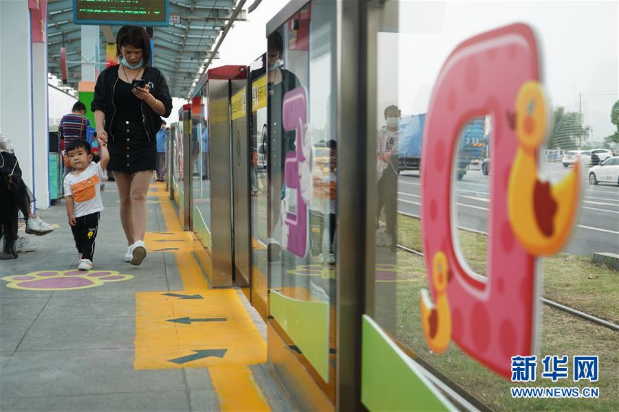 5月31日,乘客进入南京市建邺区河西新城有轨电车友谊街站候车。新华社记者季春鹏摄