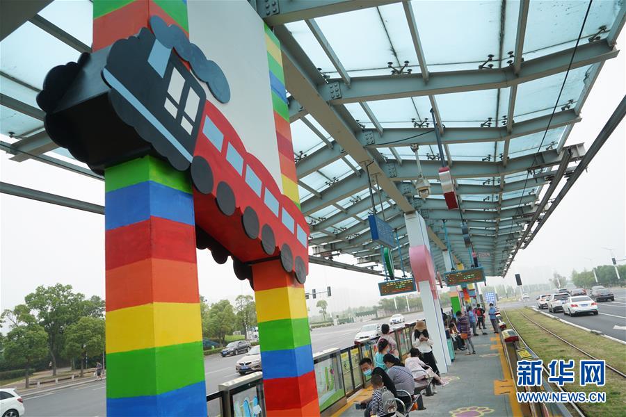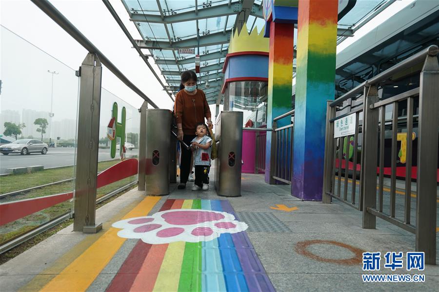 5月31日,乘客在南京市建邺区河西新城有轨电车友谊街站候车。“六一”国际儿童节前夕,江苏省南京市建邺区河西新城有轨电车友谊街站装扮一新,站台上的城堡、热气球等充满童趣的元素让乘客仿佛置身“童话世界”。该站临近南京市儿童医院河西院区,家长和儿童乘客较多。新华社记者季春鹏摄