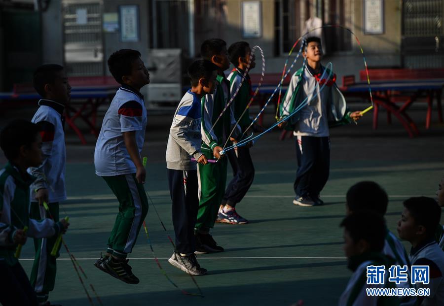 跳绳运动已经深深融入七星小学的日常,体育课上同学们在练跳绳(2019年11月18日摄)。新华社记者刘大伟摄
