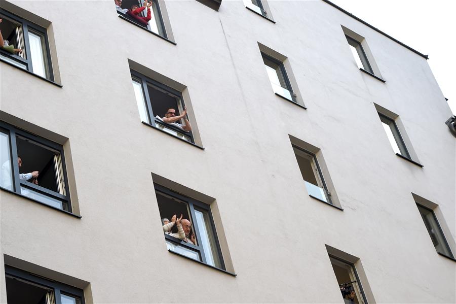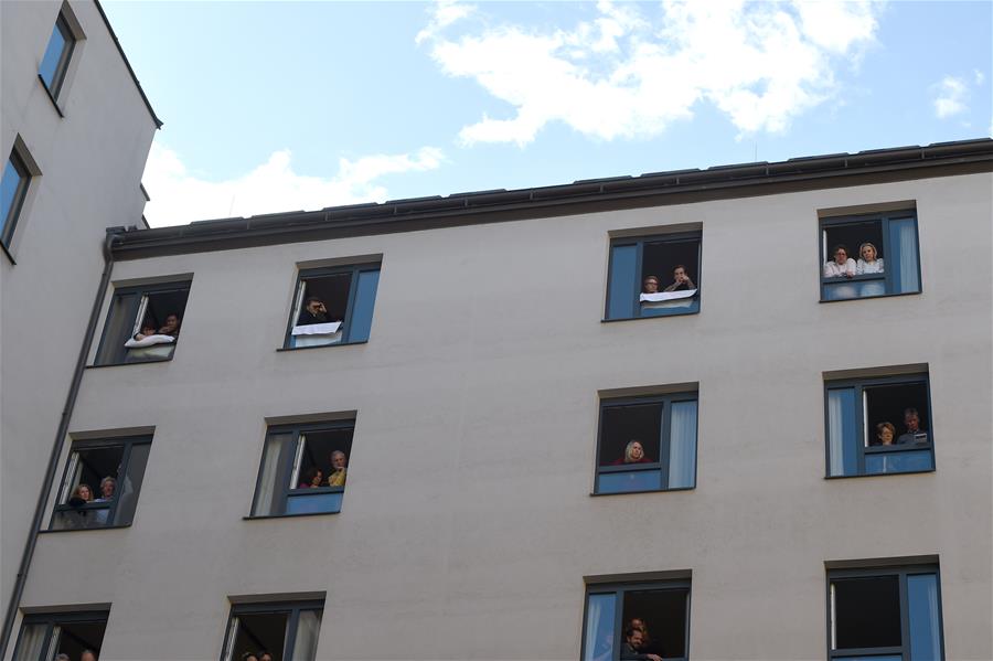 5月30日,在奥地利维也纳“时代精神”酒店内,人们在房间窗口欣赏歌剧演出。当日,奥地利首都维也纳的一家名为“时代精神”的酒店为迎接“解封”后恢复营业,在其庭院内举办“窗口音乐会”。按照奥政府此前公布的“解封”时间表,从29日起,宾馆酒店以及健身房、游泳池和游乐场等休闲娱乐场所有条件恢复运营。新华社记者郭晨摄