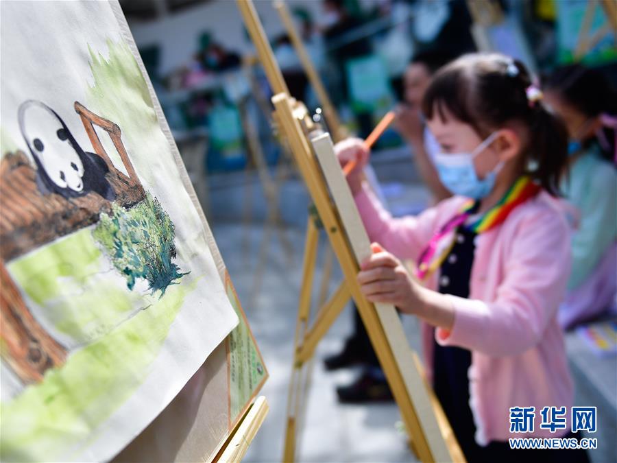 5月31日,小朋友在西宁熊猫馆内绘画。新华社记者张龙摄