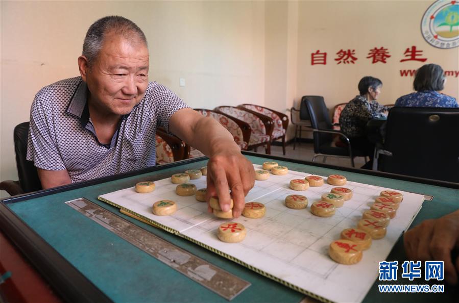 6月1日,在正定县塔元庄村劲松老年公寓,老人在棋牌室下象棋。新华社记者朱旭东摄。