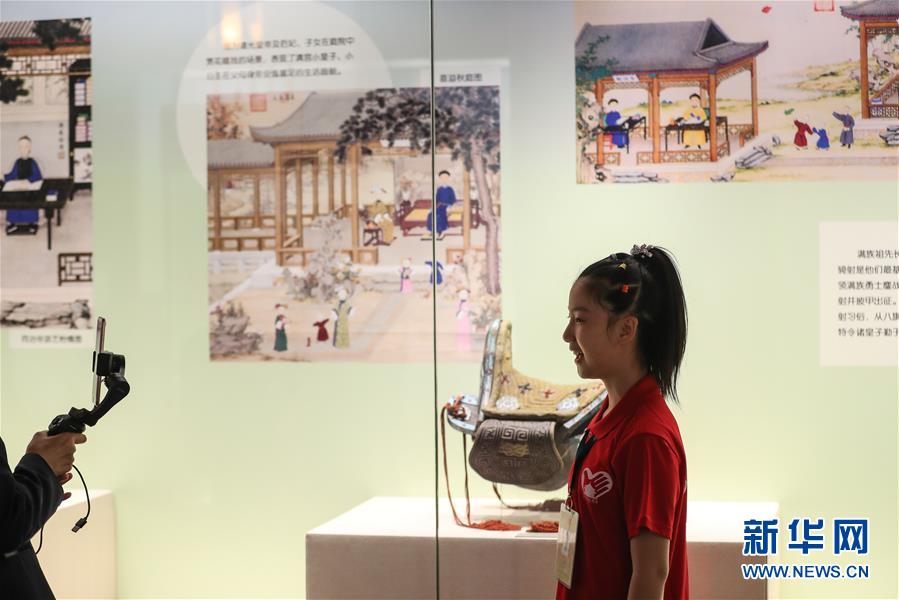 6月1日,小志愿者于冰清在沈阳故宫博物馆内通过直播向观众讲解“古趣童心——清宫文物中的儿童世界”展览。当日是“六一”国际儿童节,沈阳故宫博物馆的小志愿者利用网络直播的形式,带领小朋友“云”逛沈阳故宫博物馆,并向小朋友们详细讲解正在馆内展出的“古趣童心——清宫文物中的儿童世界”展览。新华社记者潘昱龙摄。