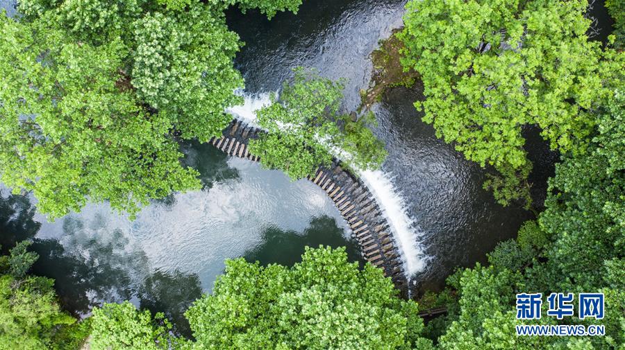 6月2日拍摄的贵阳市阿哈湖国家湿地公园(无人机照片)。初夏时节,贵州省贵阳市阿哈湖国家湿地公园草木苍翠,风景如画,吸引人们前来休闲游玩。新华社记者陶亮摄。