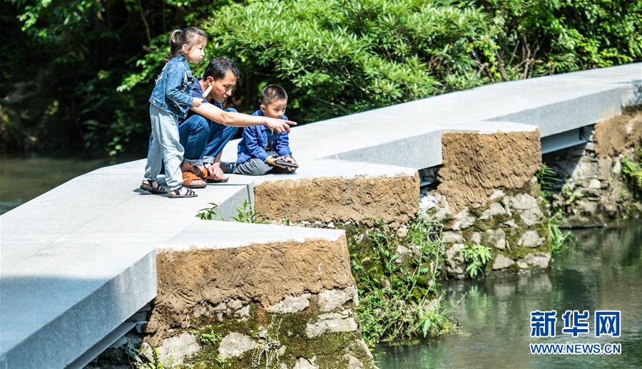 6月2日,家长带着小朋友在贵阳市阿哈湖国家湿地公园内游玩。初夏时节,贵州省贵阳市阿哈湖国家湿地公园草木苍翠,风景如画,吸引人们前来休闲游玩。新华社记者陶亮摄。