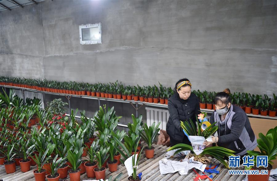 村民在延边朝鲜族自治州图们市石岘镇水南村隆吉花卉基地内工作(4月8日摄)。新华社记者林宏摄
