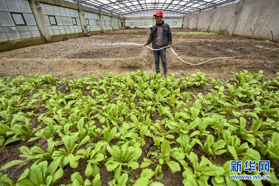 在西藏山南市隆子县玉麦乡,一名村民在温室大棚内给蔬菜浇水(5月27日摄)。新华社记者王炳坤摄。