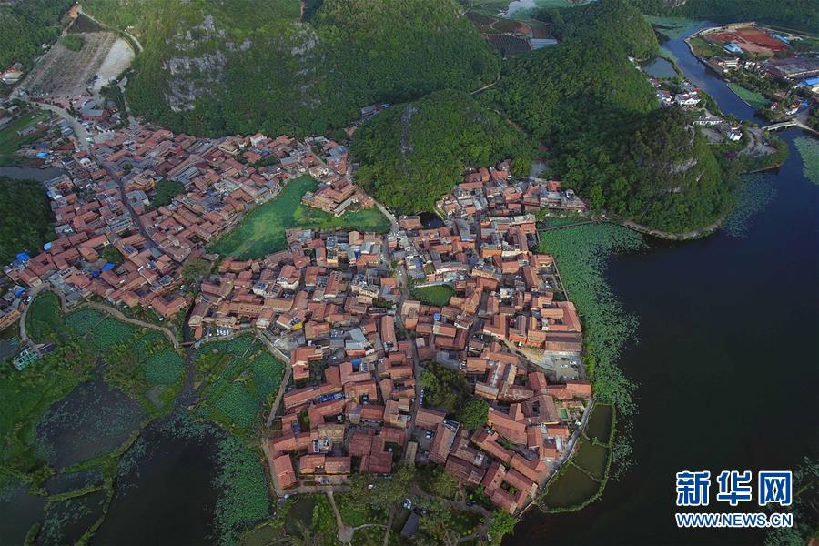 俯瞰云南丘北县普者黑仙人洞村(6月2日摄,无人机照片)。新华社记者杨宗友摄。