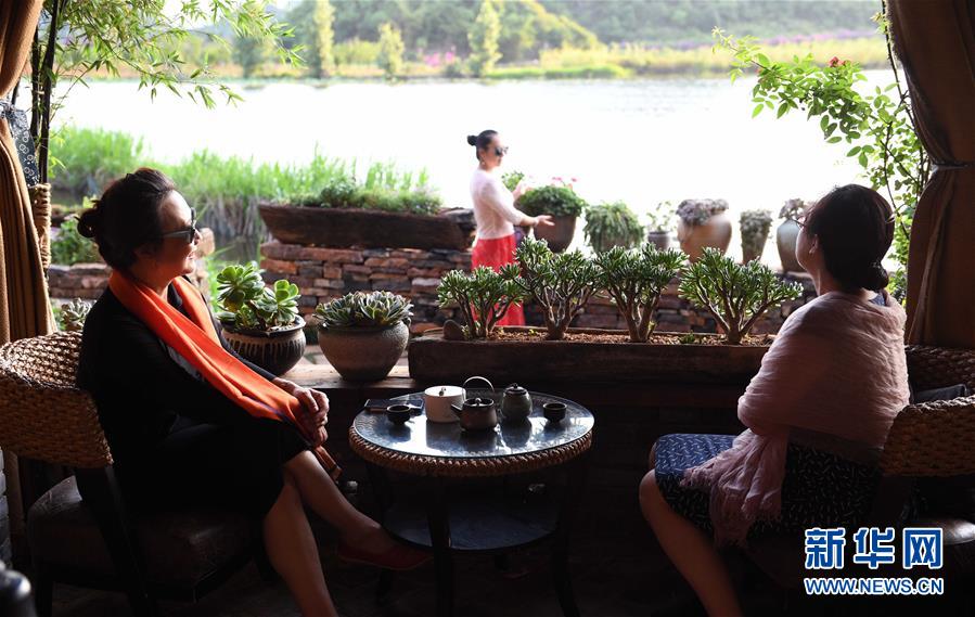 6月2日,游客在云南丘北县普者黑仙人洞村一家客栈休闲。新华社记者杨宗友摄。