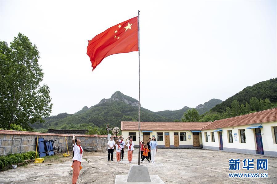 6月2日,开学第一天,马武寨寄宿制小学举行了升旗仪式。新华社记者杨晨光摄。