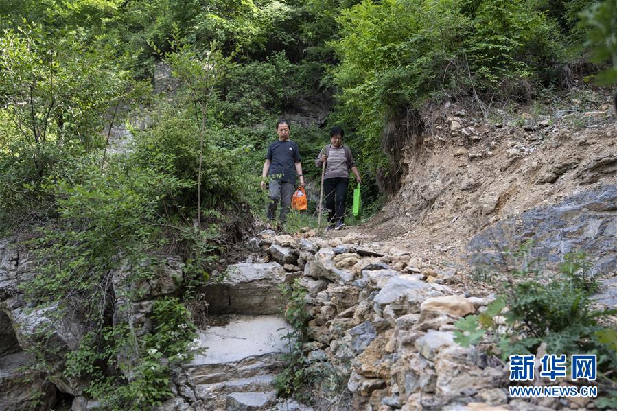 马武寨寄宿制小学校长赵金成(左)和语文老师崔连瑞前往南背村三姐弟的家(5月31日摄)。新华社记者杨晨光摄。