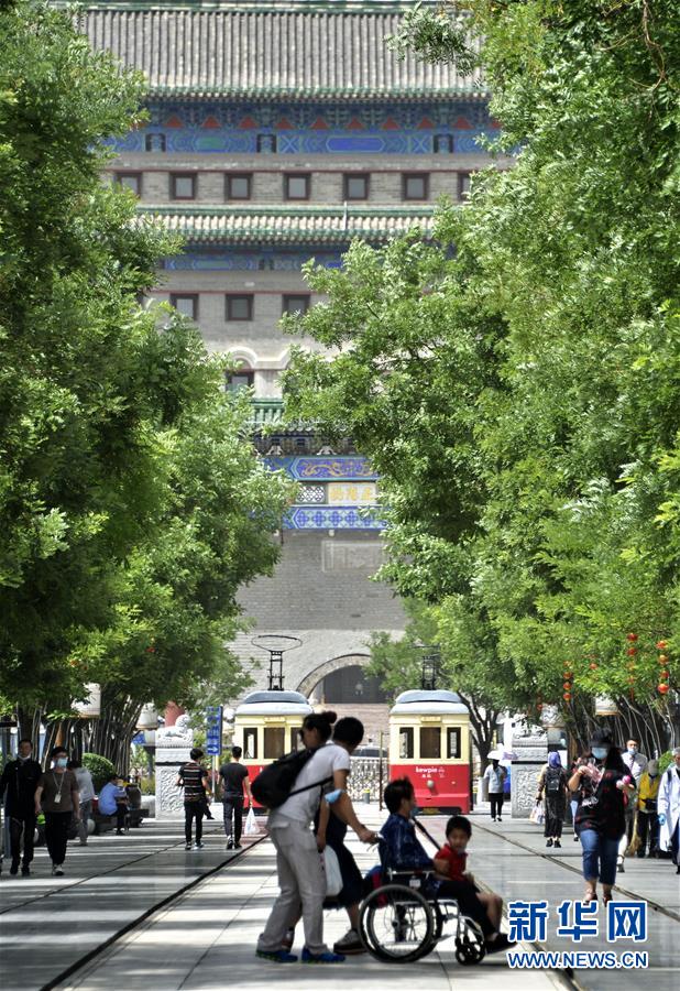 6月3日,市民及游客行走在前门步行街。近日,游人和市民纷纷来到北京市的王府井、西单、前门大街等著名商业街购物休闲,这些老商业街开始逐步恢复昔日的繁华。新华社记者李欣摄。