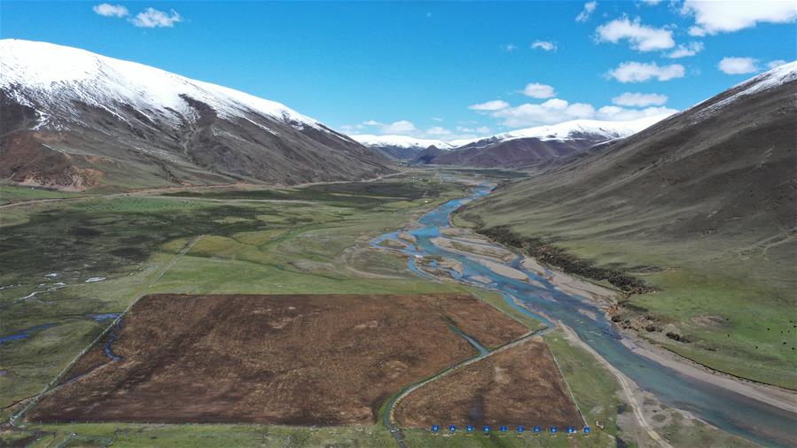 四川省甘孜藏族自治州理塘县地处青藏高原东部,县城海拔约4000米,有“天空之城”的美誉。时值初夏,理塘的天空碧蓝如洗,巍峨的雪山环绕四周,牦牛星星点点散落于旷野之上,构成一幅高原特有的壮美图景。新华社记者李梦馨摄。