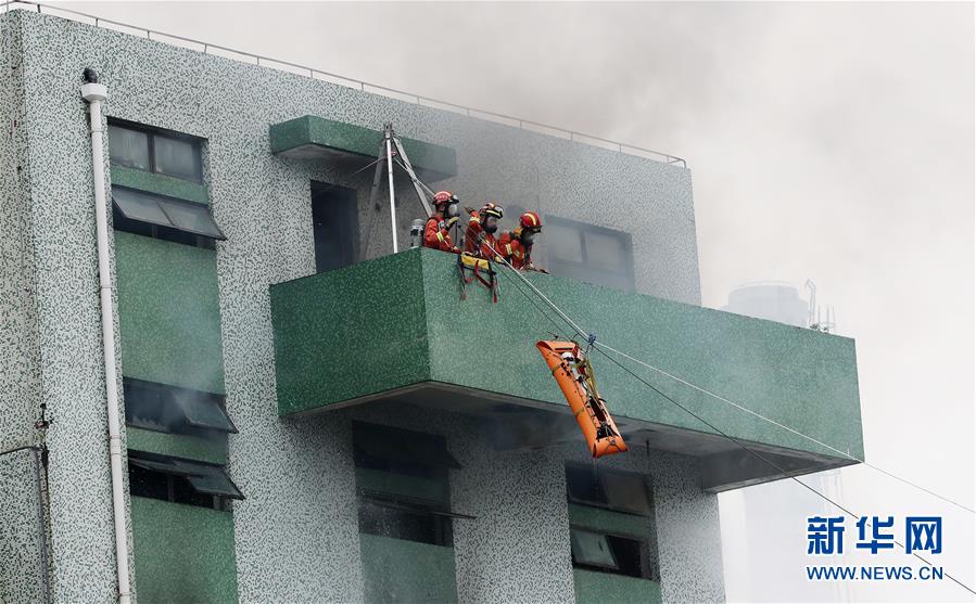 6月3日,救援人员在演练中使用索降营救“被困”人员。新华社记者方喆摄。