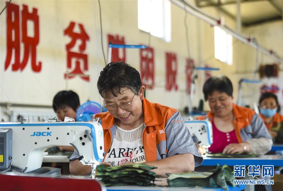 6月3日,村民在深州市高古庄镇凤凰池村扶贫车间做缝纫工作。今年以来,河北省深州市围绕决胜全面小康、决战脱贫攻坚任务目标,在推进产业扶贫的过程中注重激发内生动力,通过电商扶贫、扶贫车间、特色种植养殖等多种形式,提升自我“造血”功能,提高贫困群众受益度。新华社记者李晓果摄。