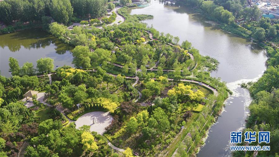 这是6月5日拍摄文安县水景公园(无人机照片)。近年来,河北省文安县将植树造林与城市建设有机融合,探索“政府引导、企业运作、多方共赢”的市场化植树造林新模式,大规模推进国土绿化,打造人与自然和谐共生的优美生态环境,构筑京津雄绿色屏障。截至目前,该县森林覆盖率已经达到33%,城区绿地面积达到36.48%。新华社记者李晓果摄。