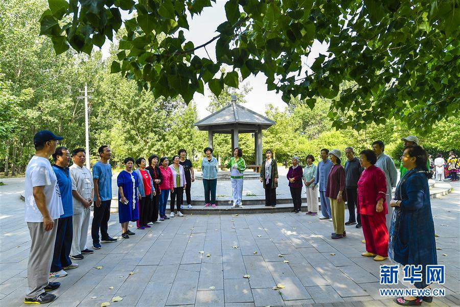 6月5日,市民在文安县水景公园内练习合唱。近年来,河北省文安县将植树造林与城市建设有机融合,探索“政府引导、企业运作、多方共赢”的市场化植树造林新模式,大规模推进国土绿化,打造人与自然和谐共生的优美生态环境,构筑京津雄绿色屏障。截至目前,该县森林覆盖率已经达到33%,城区绿地面积达到36.48%。新华社记者李晓果摄。