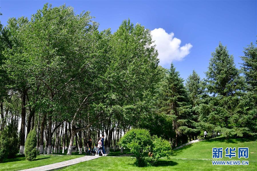 5月30日,西宁市民在青海省西宁市南山公园内散步。近年来,青海省西宁市大力开展植树造林,在半干旱气候、湿陷性黄土的现实情况下破解种树难题,目前全市建成区绿化覆盖率已达40.5%。新华社记者张龙摄。