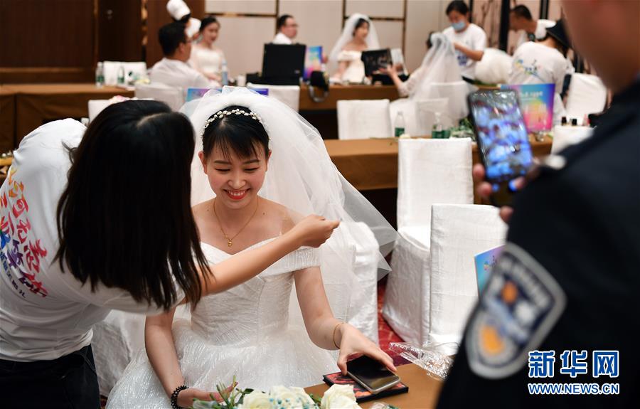 6月6日,在海南博鳌乐城国际医疗旅游先行区,新人准备参加集体婚礼。 新华社记者 张玉薇 摄