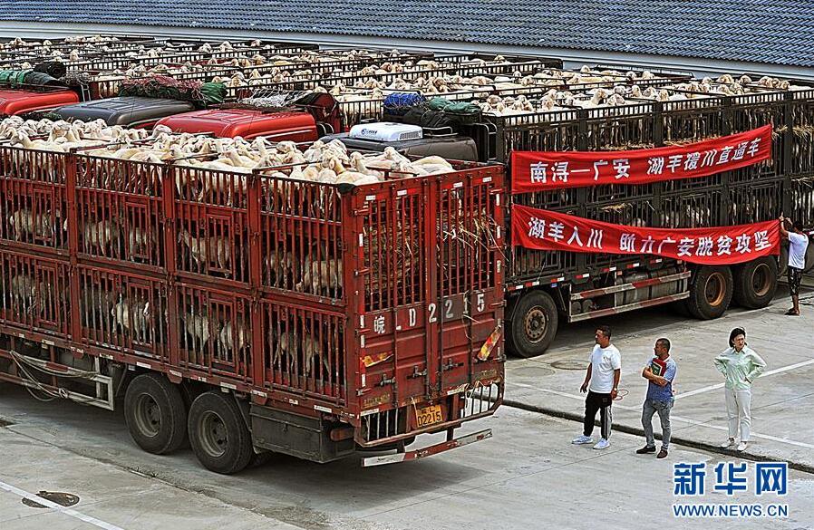 6月7日,装运湖羊的货车准备发车。当日,浙江省湖州市南浔区湖羊养殖场饲养的五千余头湖羊启程运往该区对口帮扶的四川省广安市广安区。2018年以来,南浔区依托湖羊养殖产业优势,积极实施“湖羊入川”和“湖羊致富”工程,向对口帮扶地区提供优质湖羊种羊和湖羊养殖技术指导。截至目前,南浔区已向广安等地提供1.2万余头扶贫湖羊。新华社记者谭进摄