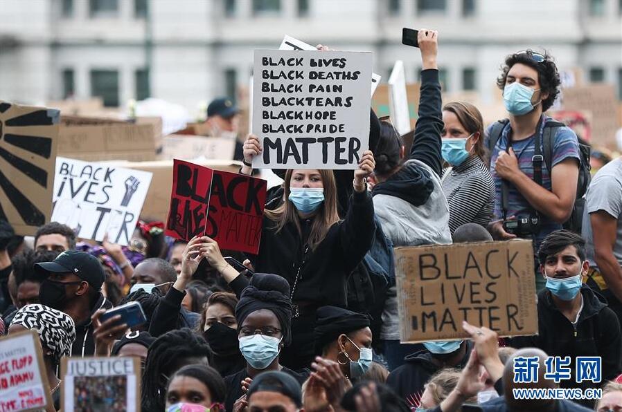 比利时举行示威活动抗议美国警察暴力执法和种族主义