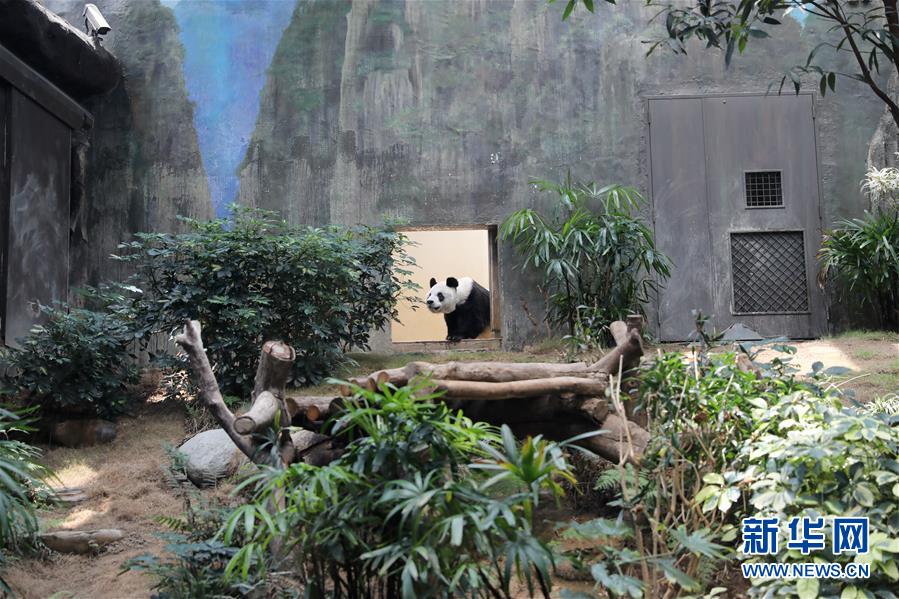 大熊猫“安安”来到香港海洋公园展区(5月11日摄)。新华社记者吴晓初摄